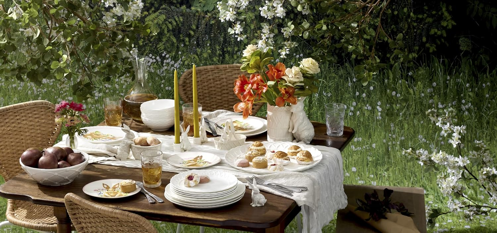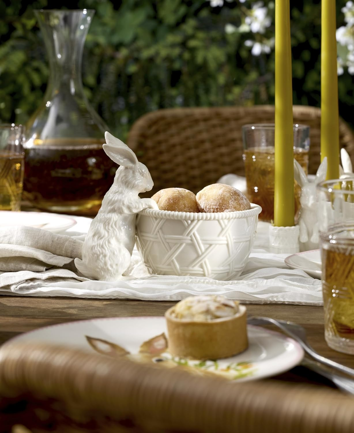 Hop into spring with Wicker Creek Bunny! This cute-as-a-cottontail candy dish gives you the prettiest way to say that Easter's on its way with adorable white rabbit figurals. Crafted of durable porcelain, these pieces are perfect for celebrations or enjoying every day. Mix and match with Wicker Creek for the freshest tablescapes.