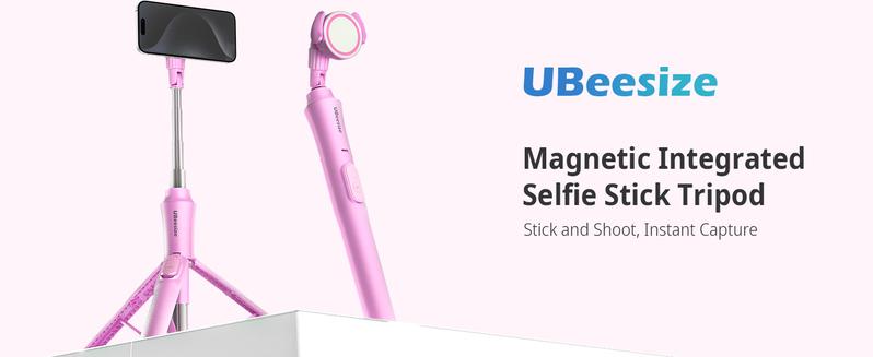 Ubeesize 62'' Magnetic Tripod for Iphone with Remote Extendable Cell Phone Stand Compatible Magsafe Selfie Stick for Iphone 15 14 13 12 11 Series & Android Phones Pink Aluminum Portable Compact Bluetooth Clip - Smartphone